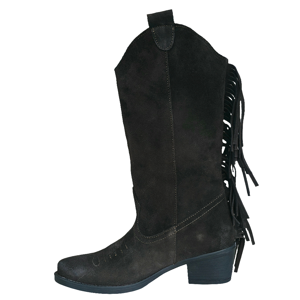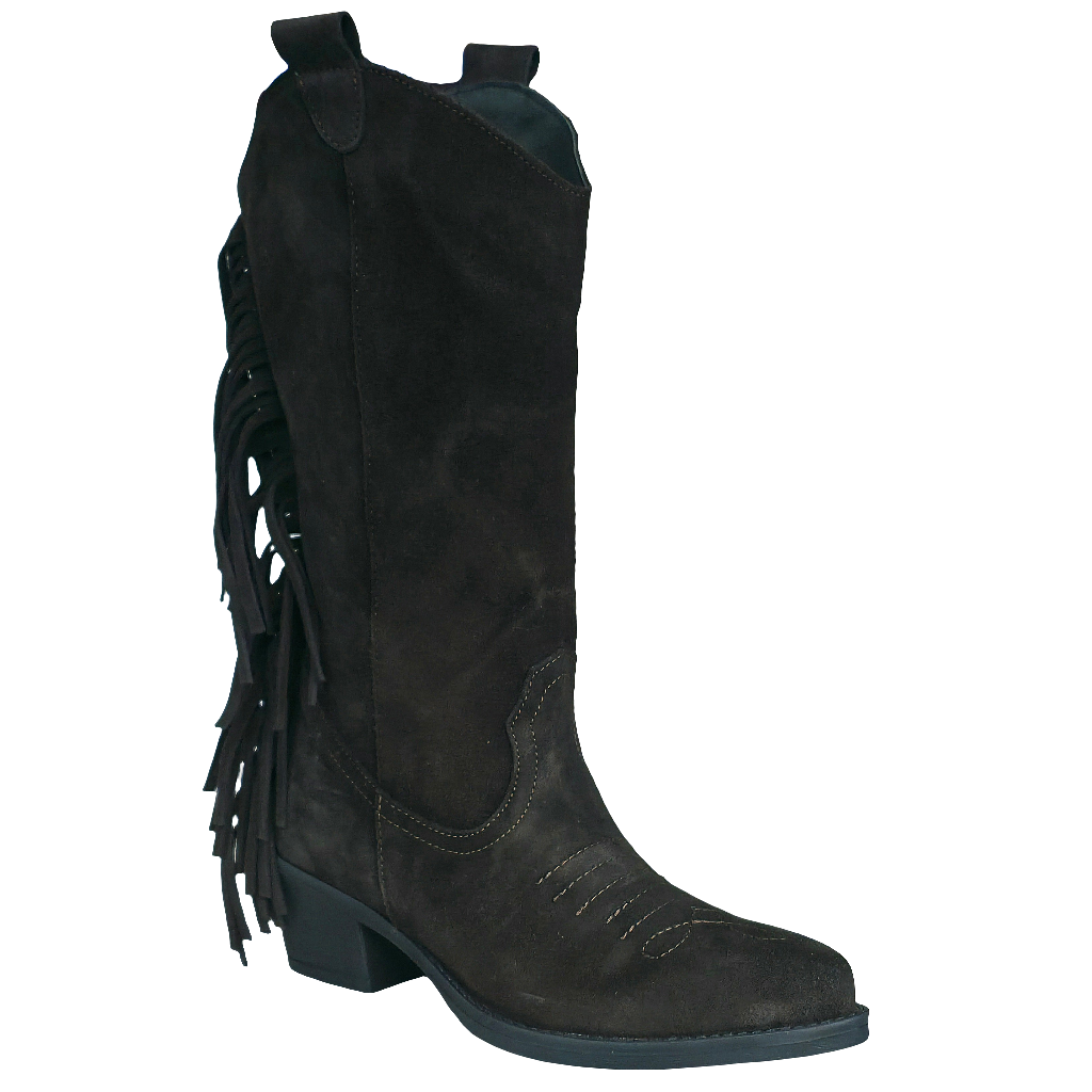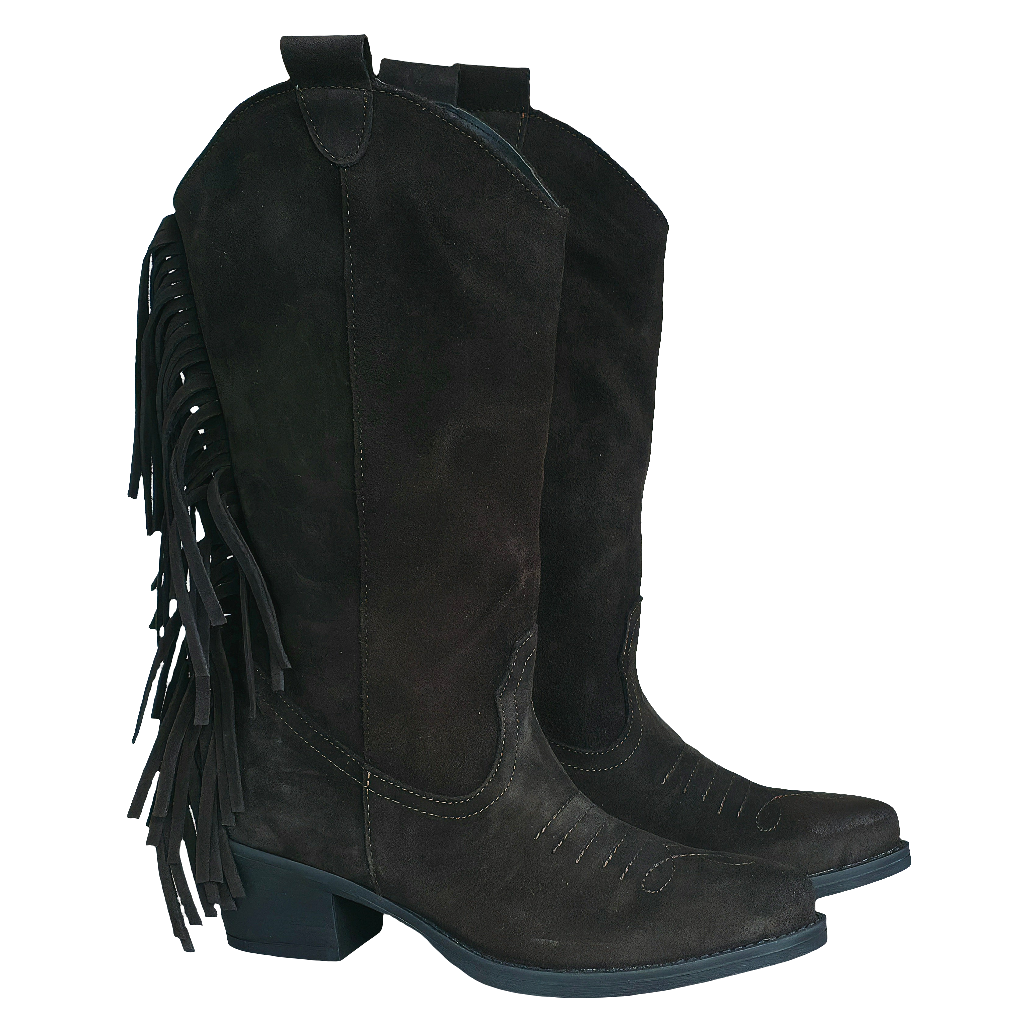 Ciocate dama din piele naturala intoarsa cu franjuri, maro - Made in Italy 04 T Moro