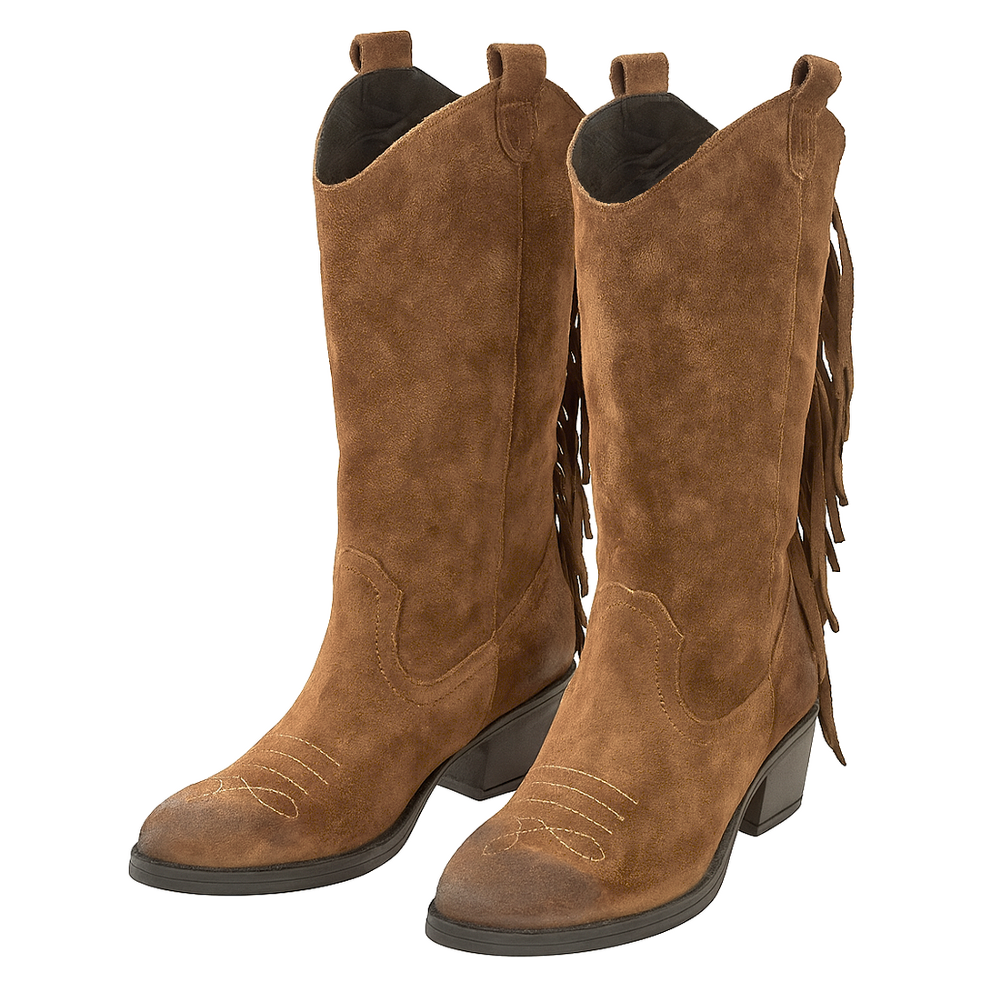 Ciocate dama din piele naturala intoarsa cu franjuri, maro - Made in Italy 04 Tabacco