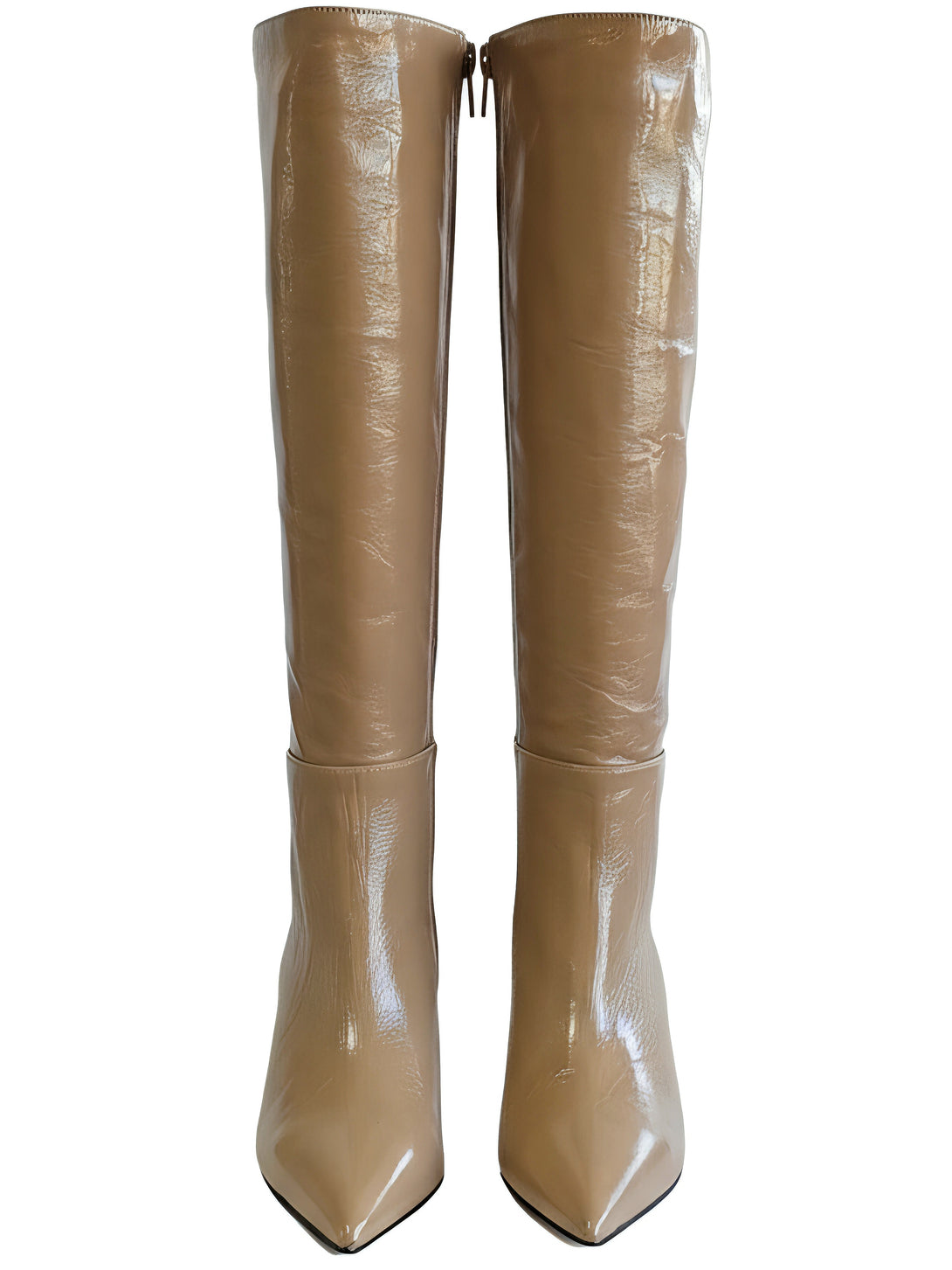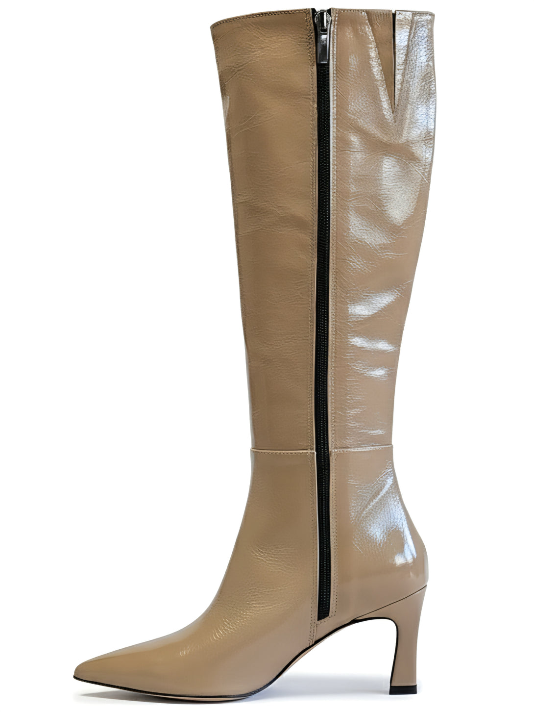 Cizme dama din piele naturala cu aspect usor lucios, Bej-Altramarea, 67290 Venice Cameo, R1