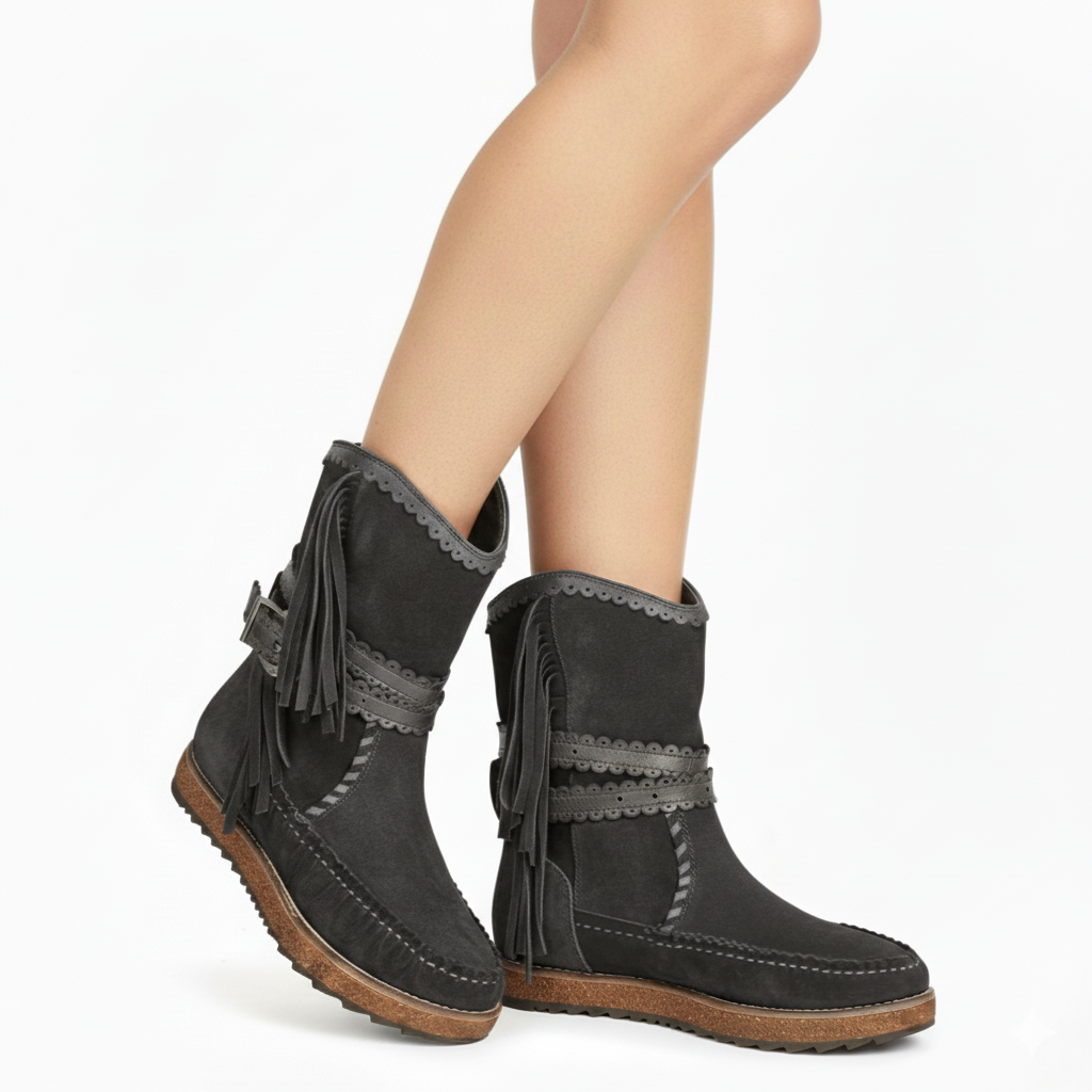 Ghete dama din piele naturala intoarsa, Gri-Rebecca White, TU1510 Crosta Asfalto, R7