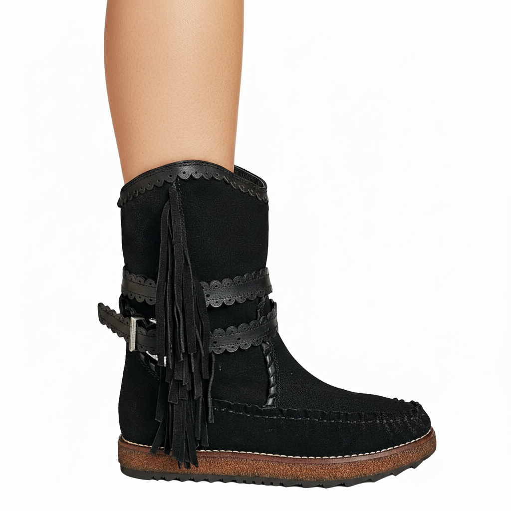 Ghete dama din piele naturala intoarsa, Negru-Rebecca White, Crosta Black TU1510, R6