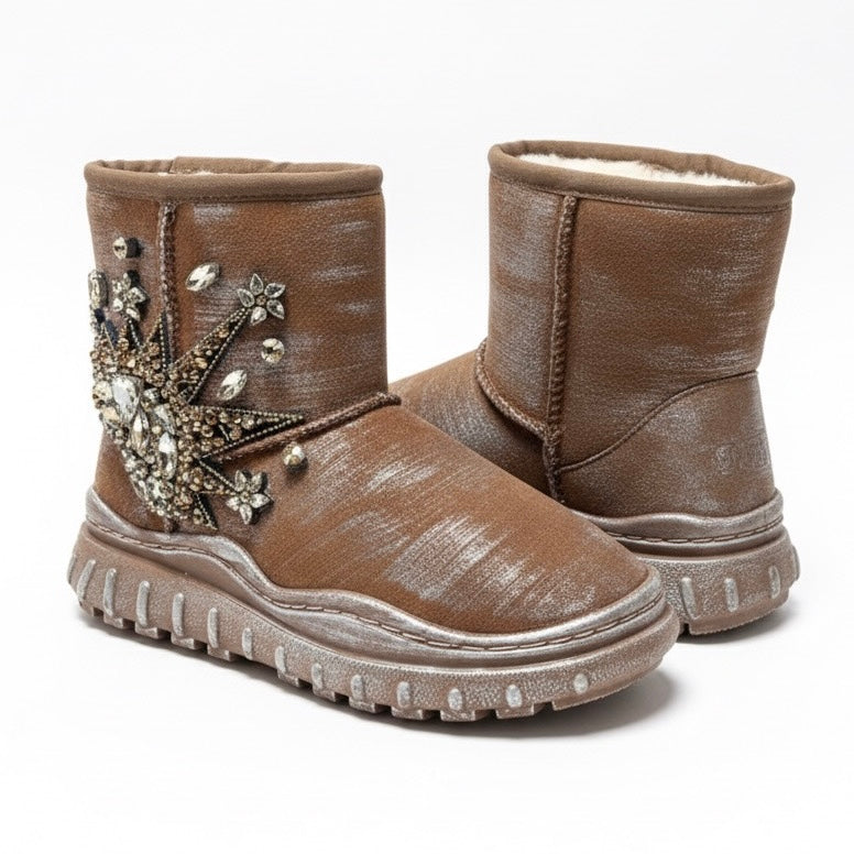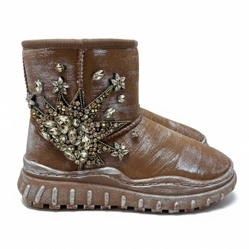 Ghete dama din material textil, îmblanite, camel-Movie's AH130VE