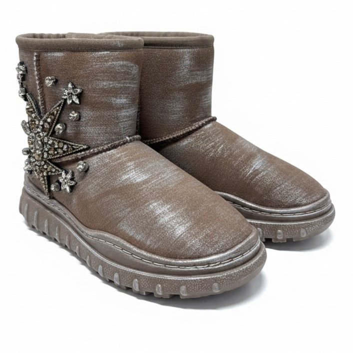 Ghete dama din material textil, îmblanite, taupe-Movie's AH140VE