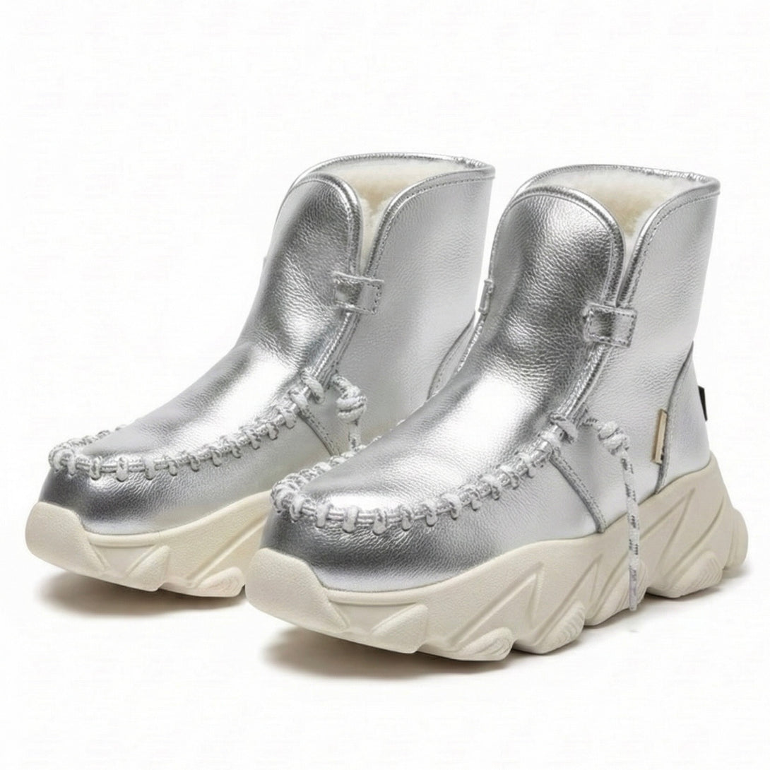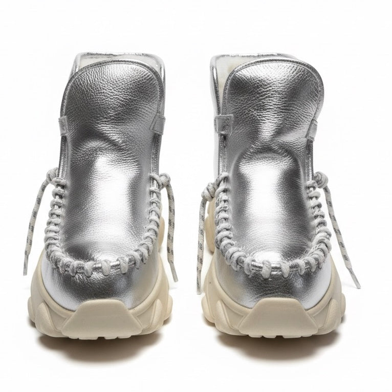 Ghete dama din piele naturala, îmblanite, argintiu-Movie's, H6-10B Silver