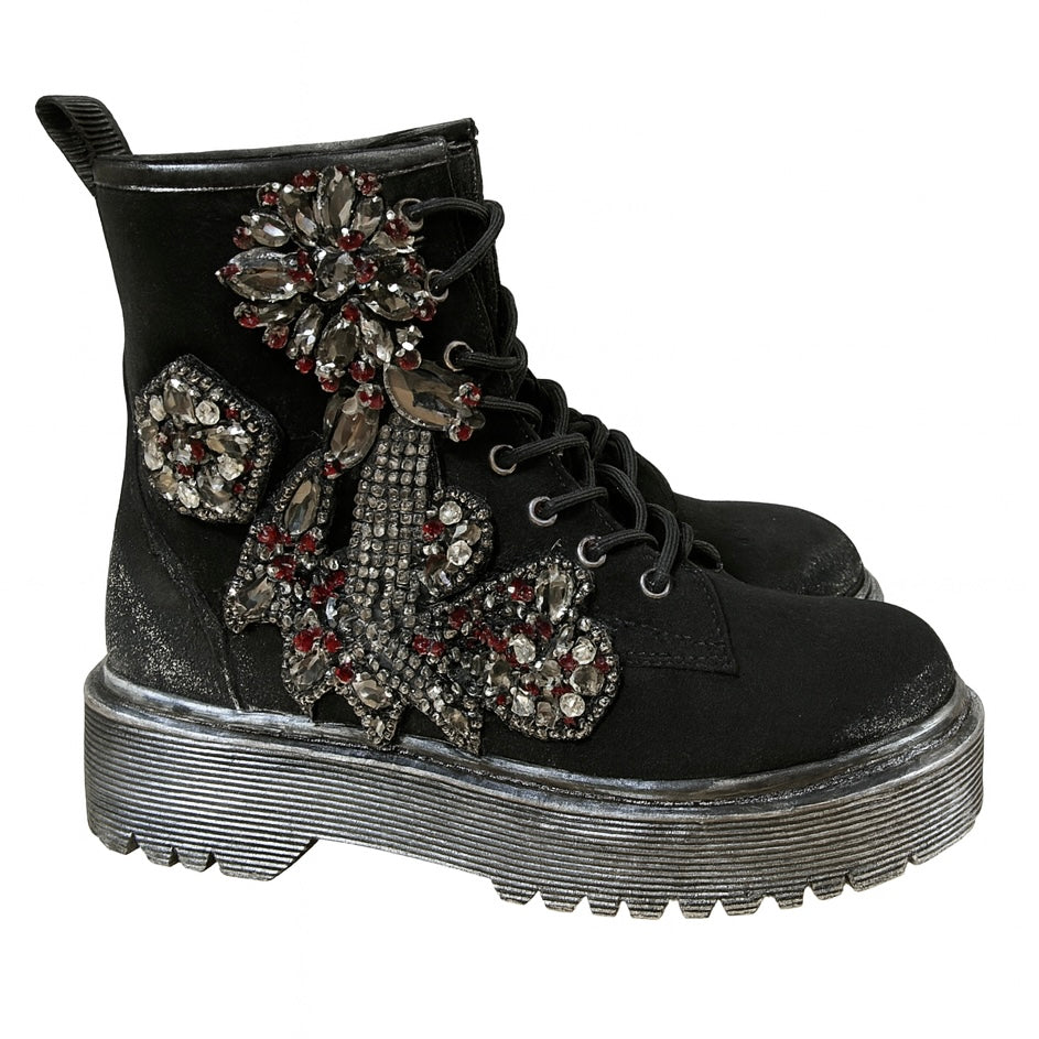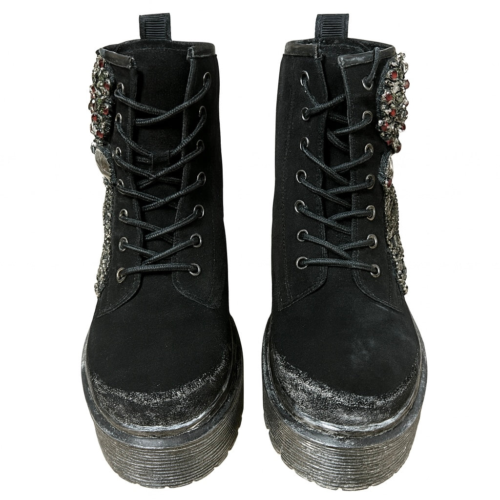 Ghete dama din piele naturala intoarsa, negru, Movies AB510