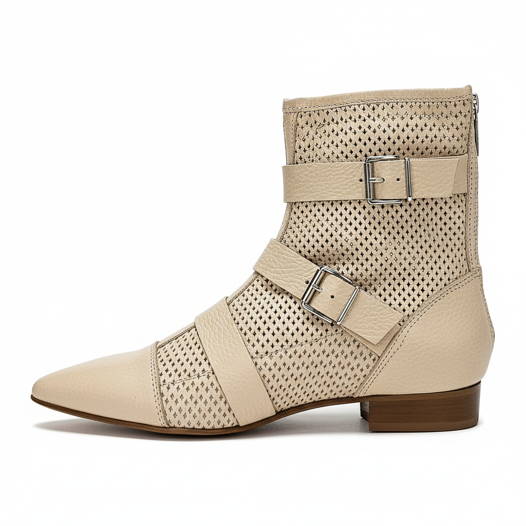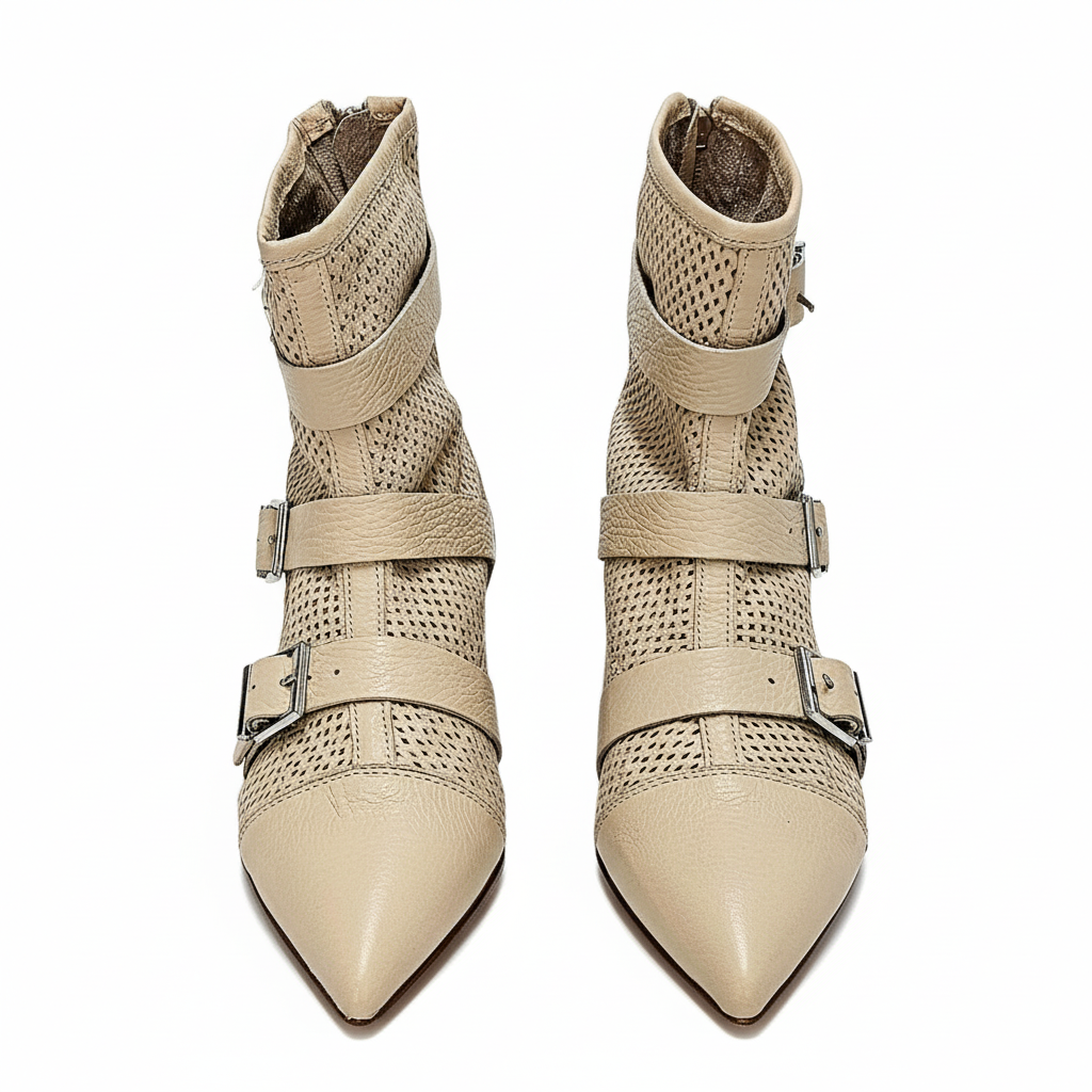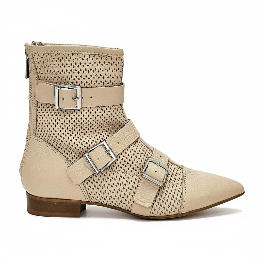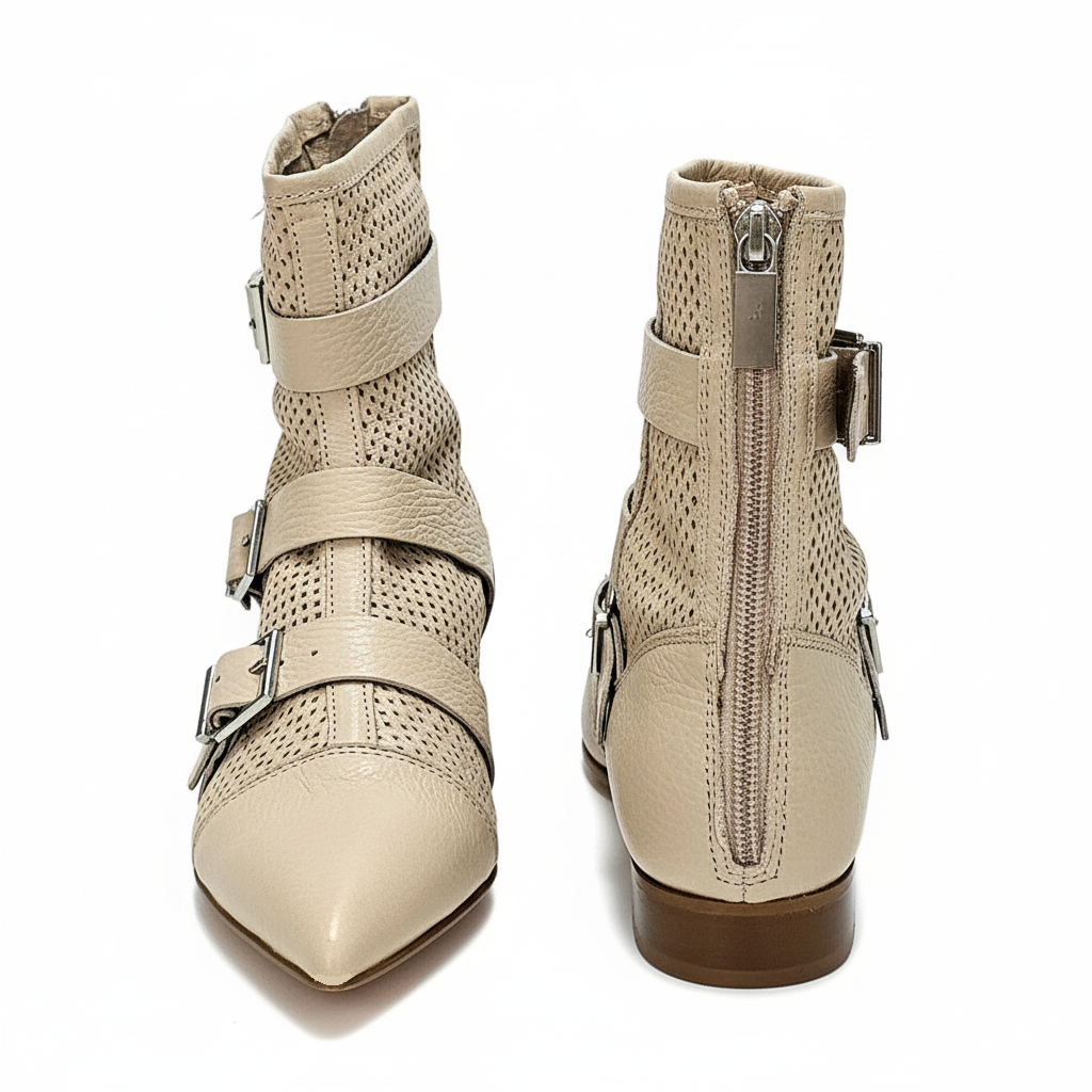 Ghete dama din piele naturala perforata, nude- Corbelli, 5591 Nude