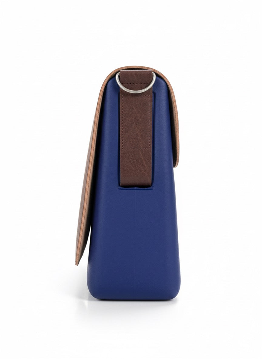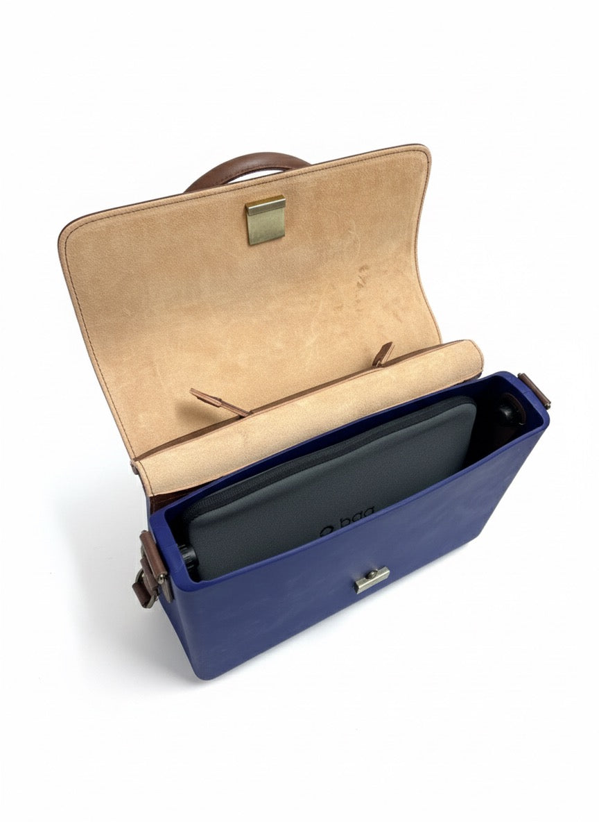 O bag servieta din piele naturala si termoplastic, tip diplomat, albastru