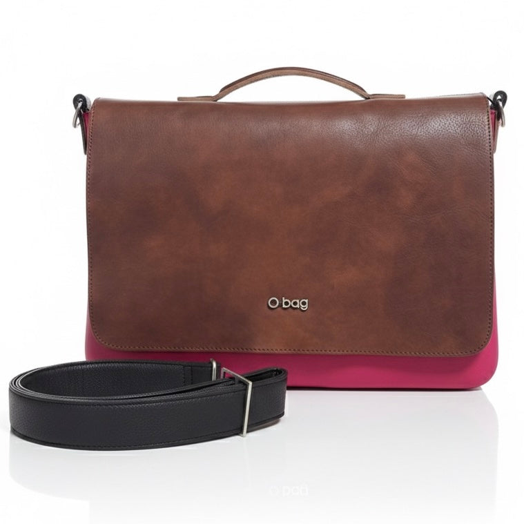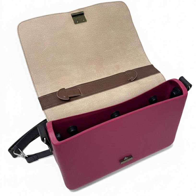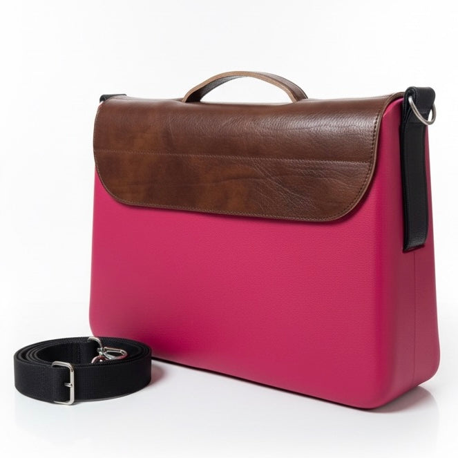 O bag servieta din piele naturala si termoplastic, tip diplomat, fuxia