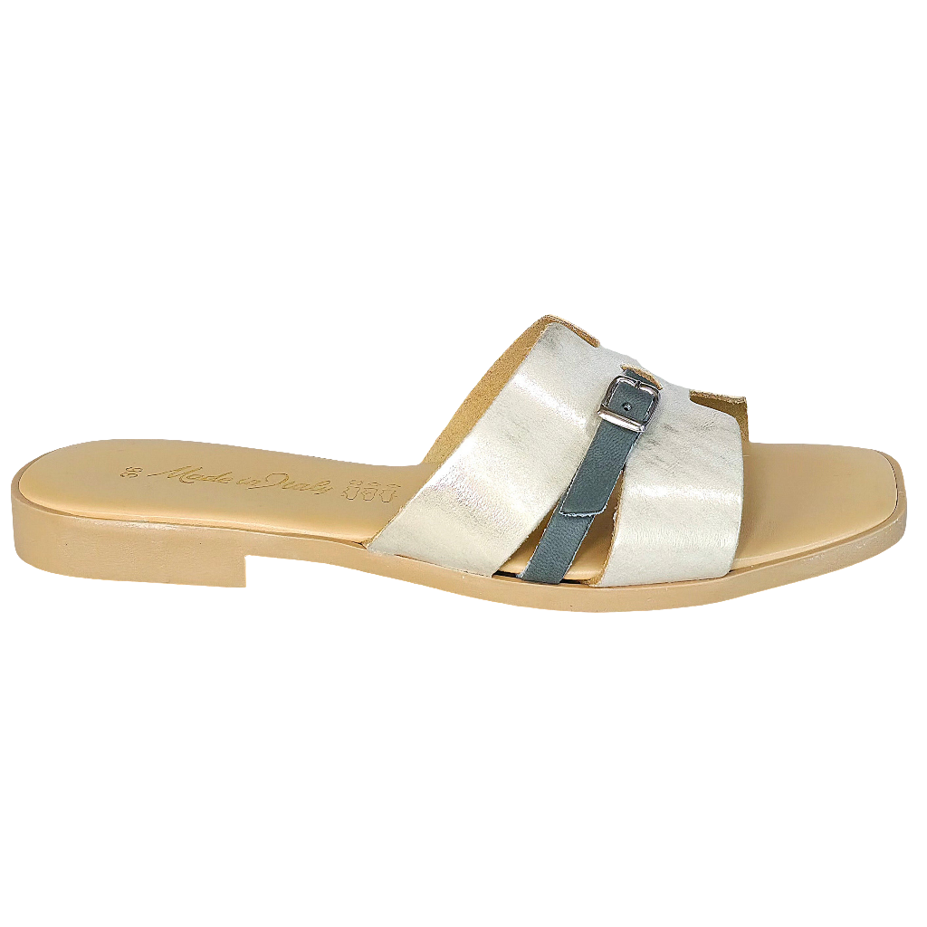 Papuci dama din piele naturala, Auriu-Made in Italy, Manuela Oro G.