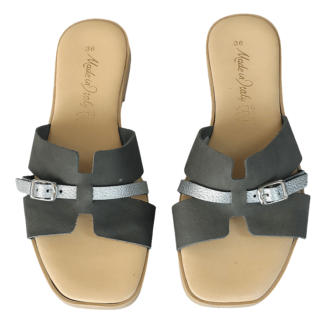 Papuci dama din piele naturala, Gri -Made in Italy, Manuela Grigo