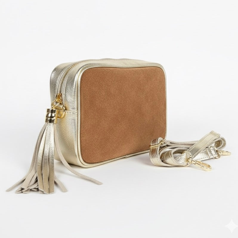 Poseta mica pentru femei din piele naturala intoarsa, maro-auriu- Made in Italy