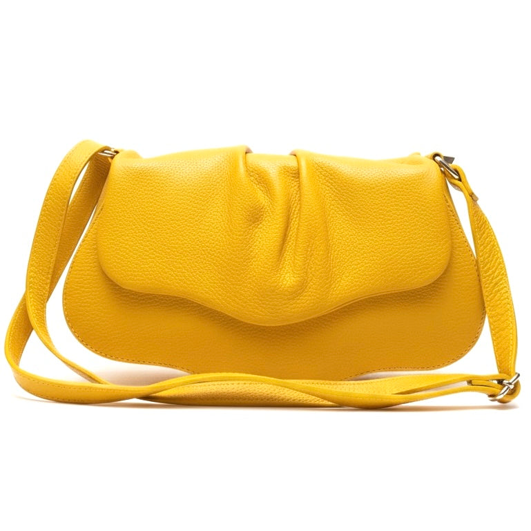 Poseta chic pentru femei din piele naturala, galben- Made in Italy