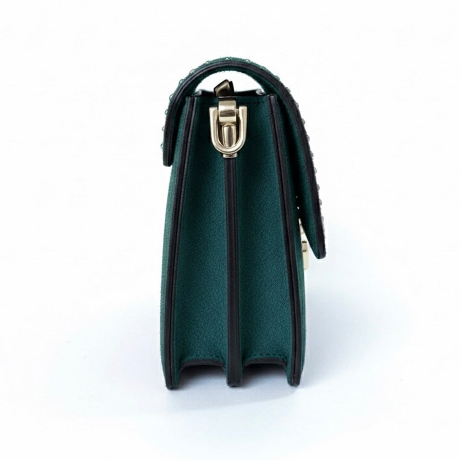 Poseta medie pentru femei din piele naturala, verde- Made in Italy