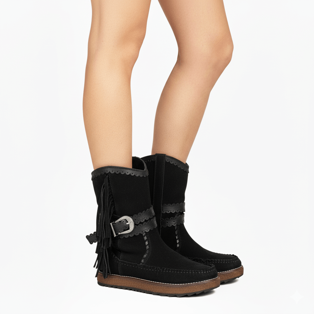 Ghete dama din piele naturala intoarsa, Negru-Rebecca White, Crosta Black TU1510, R6