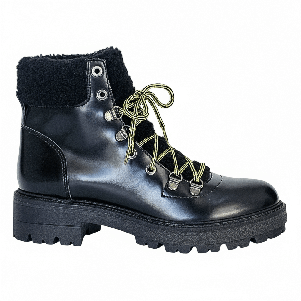 Ghete dama din piele naturala cu aspect lucios, Talpa antiderapanta, Negru-Lea-gu, 58/3754 Vitello Abr Nero, R5