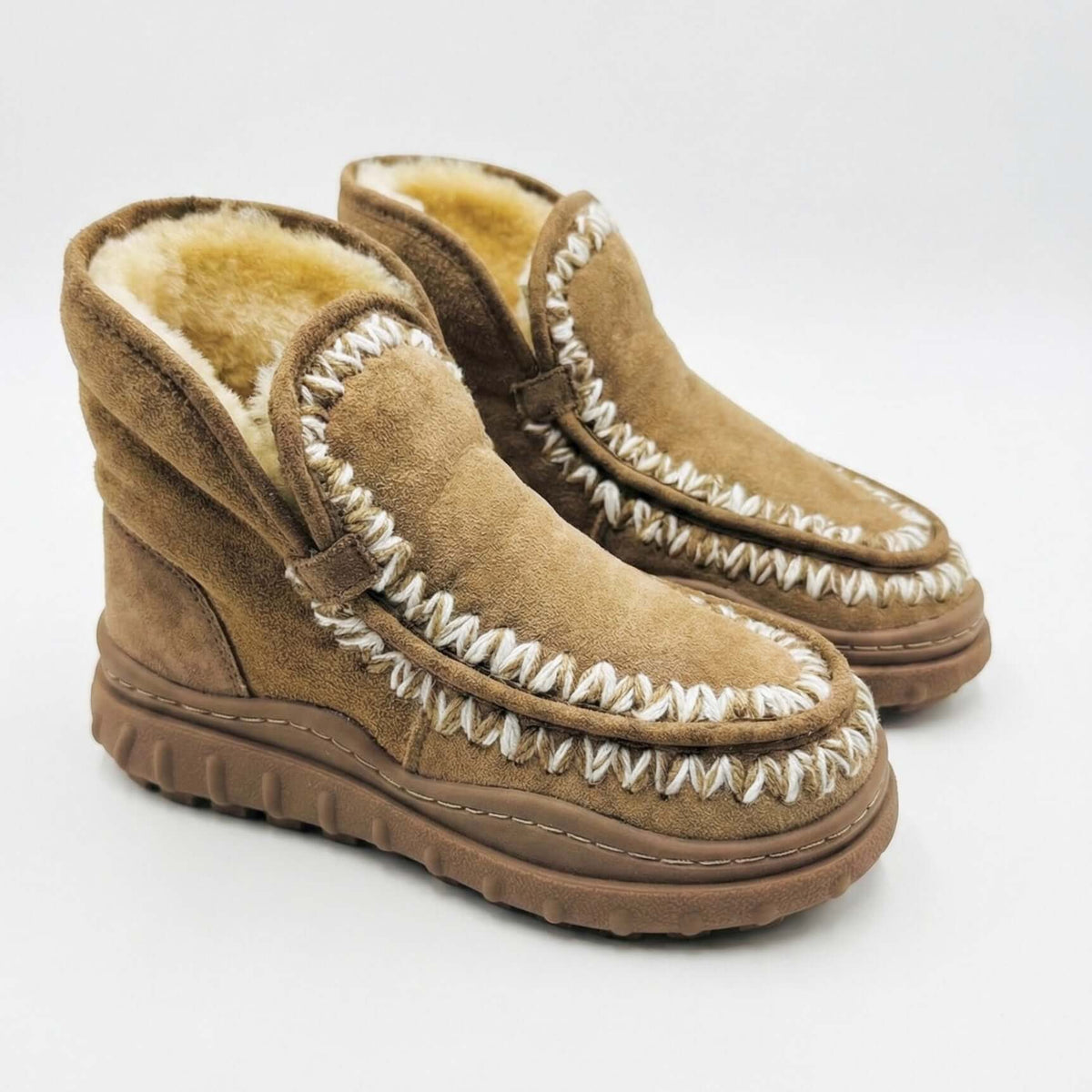 Ghete dama din piele naturala intoarsa, îmblanite, maro-Movie's AH100VE