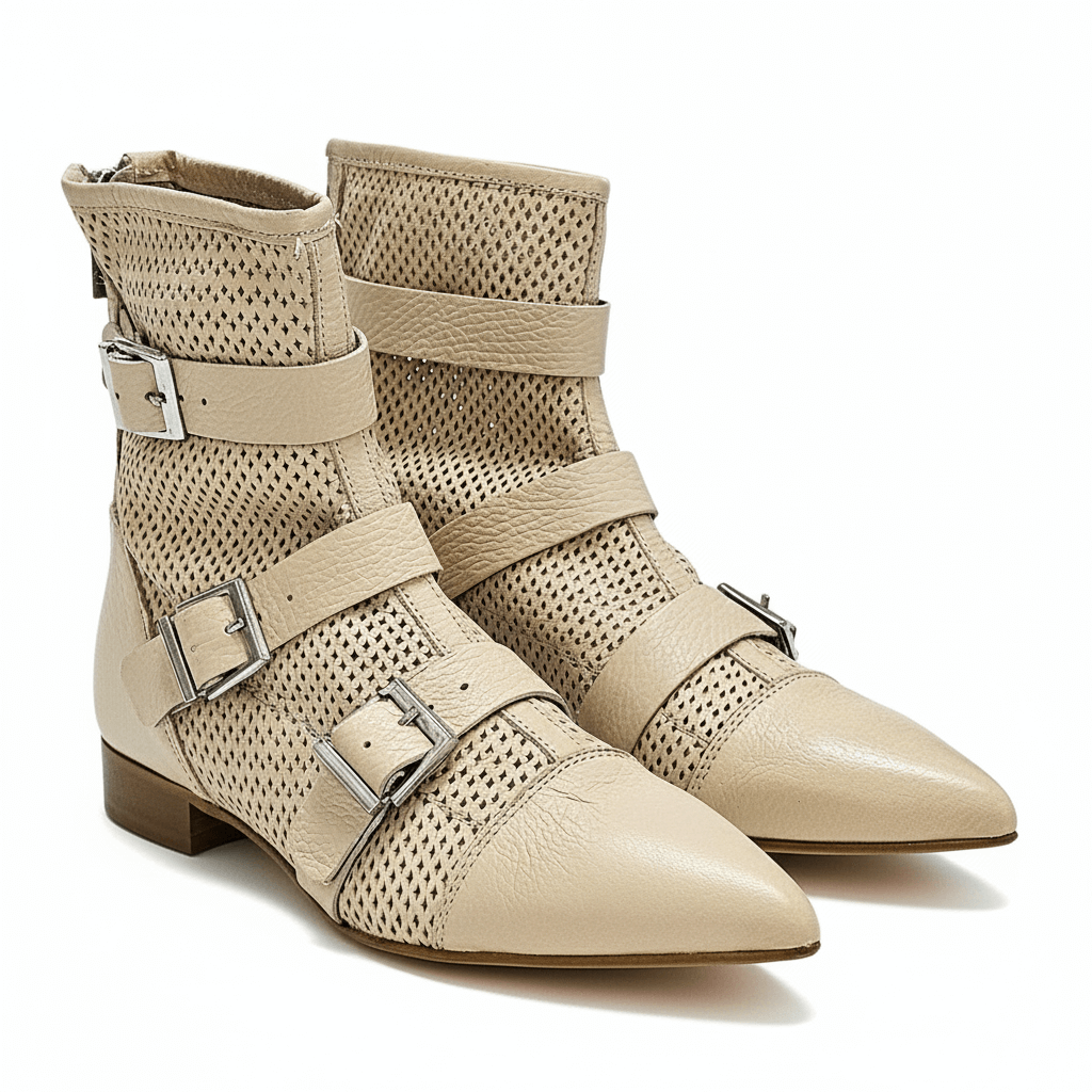Ghete dama din piele naturala perforata, nude- Corbelli, 5591 Nude