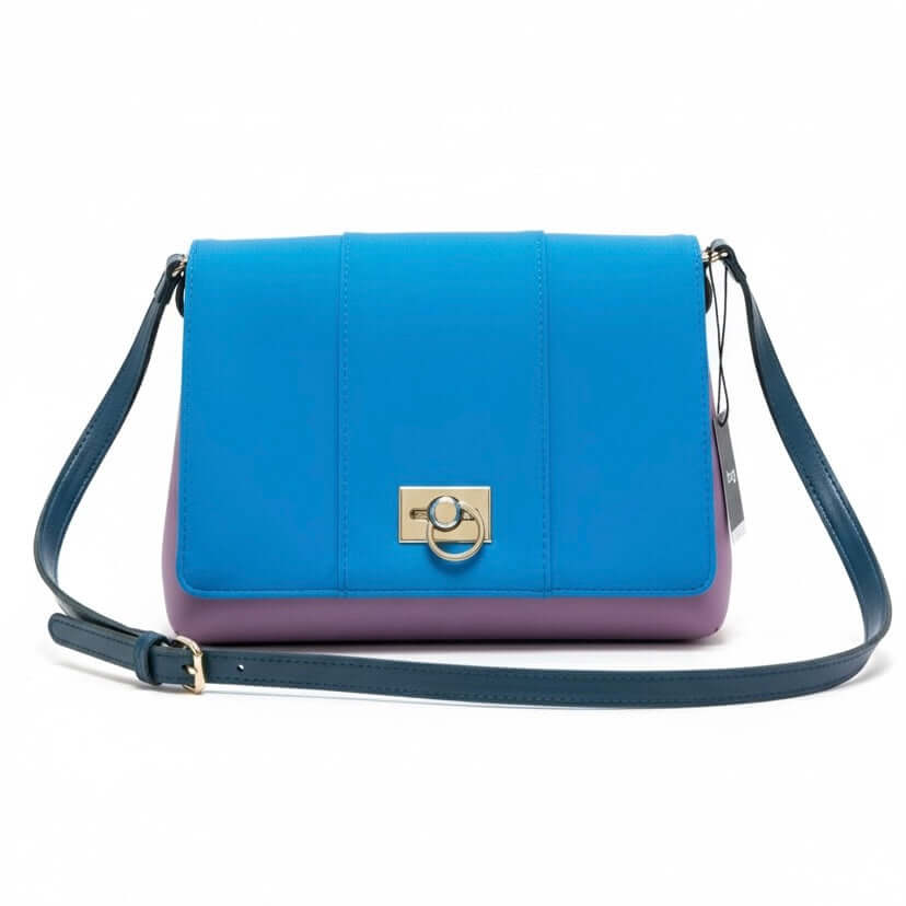 O bag, Geanta de umar medie pentru dama cu manere detașabile, albastru-mov