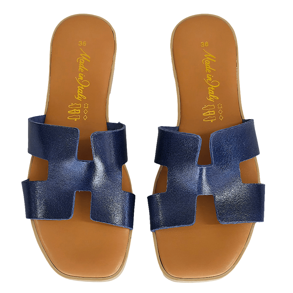 Papuci dama din piele naturala, Albastru-Made in Italy, H Blu Notte-R13