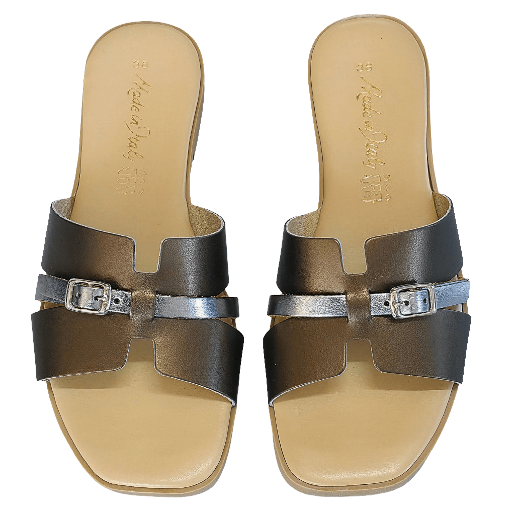 Papuci dama din piele naturala, Aramiu/Argintiu-Made in Italy, Manuela Abr Cnzo-R14
