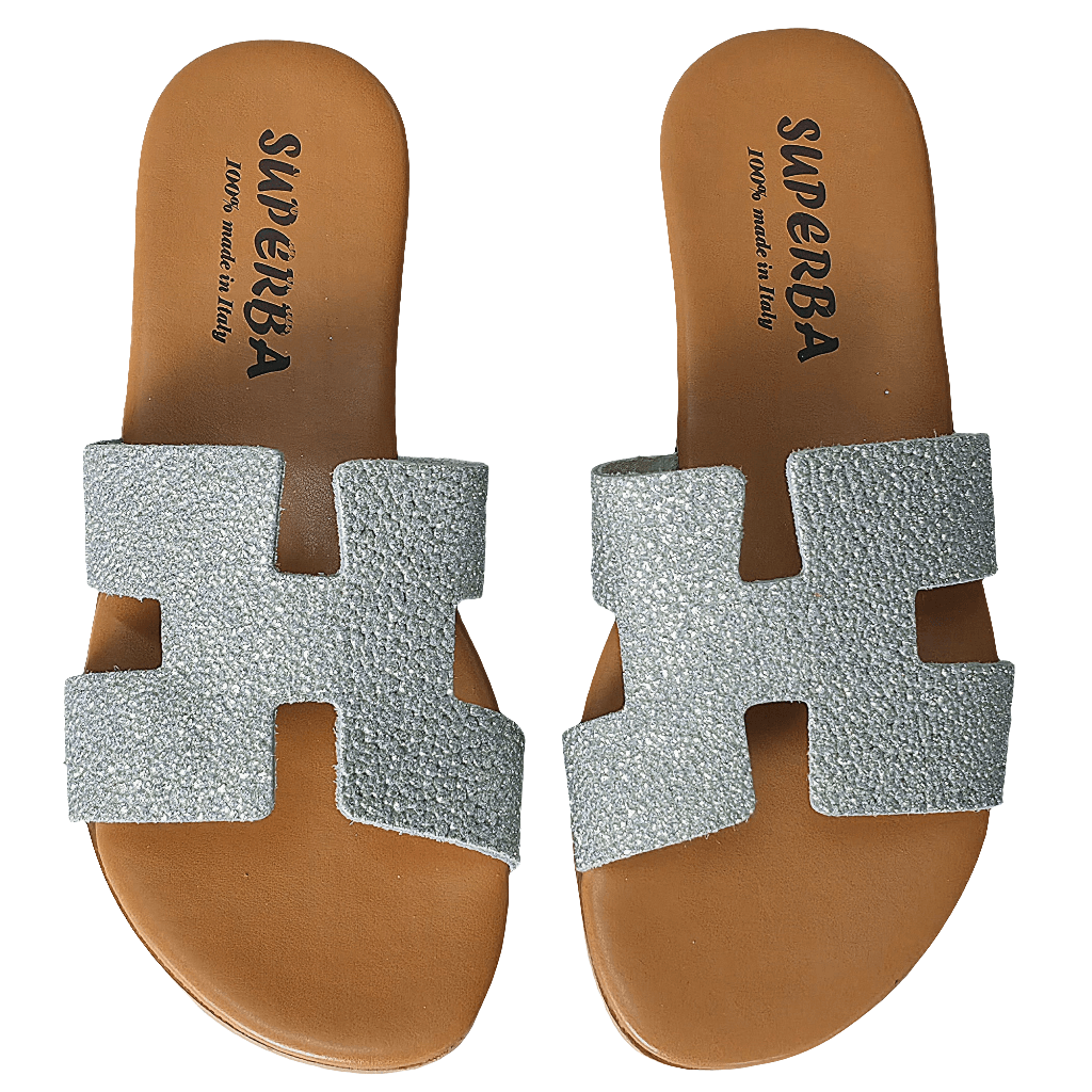 Papuci dama din piele naturala, Argintiu-Superba, Art H Pelle Arg/Brill