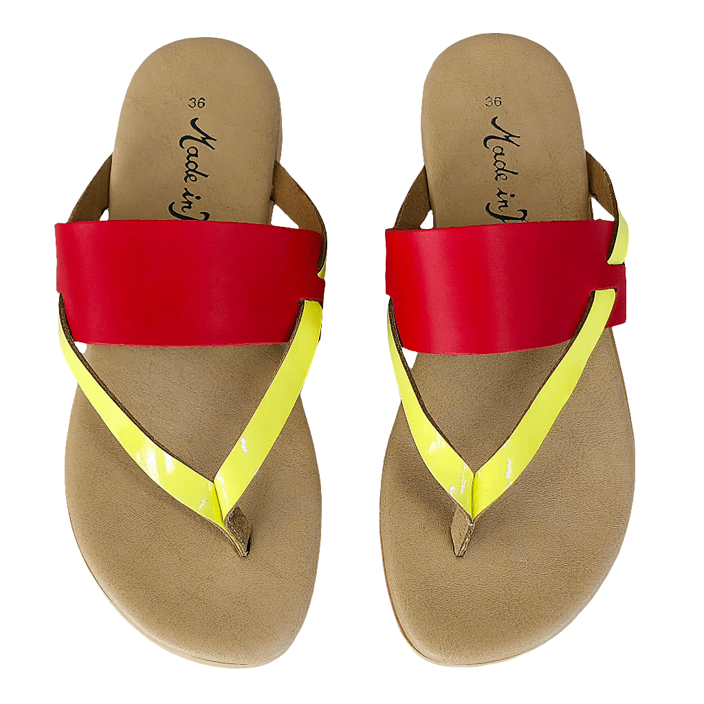 Papuci dama din piele naturala, rosu- Made in Italy Delphine Rosso/Giallo
