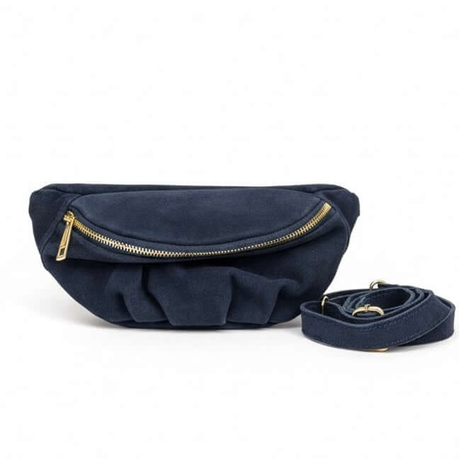 Borseta pentru femei din piele naturala intoarsa, bleumarin- Made in Italy