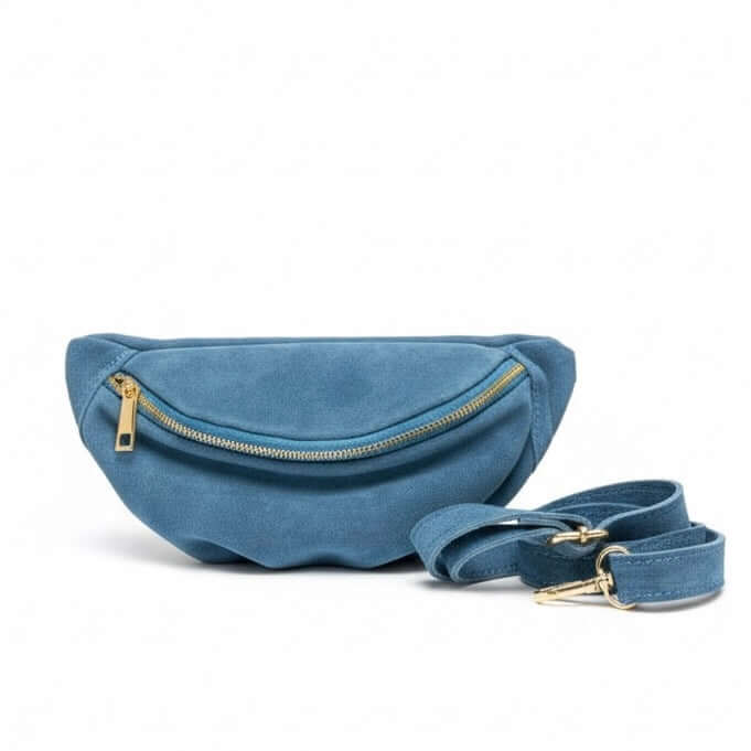 Borseta pentru femei din piele naturala intoarsa, albastru- Made in Italy