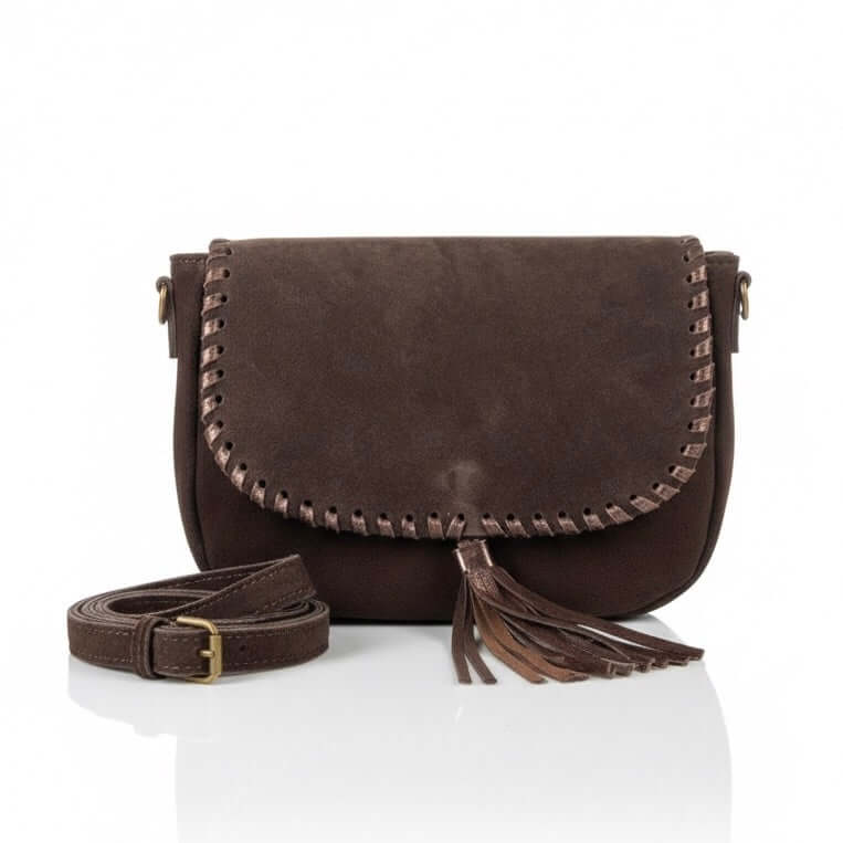 Poseta pentru femei din piele naturala intorasa, maro- Made in Italy