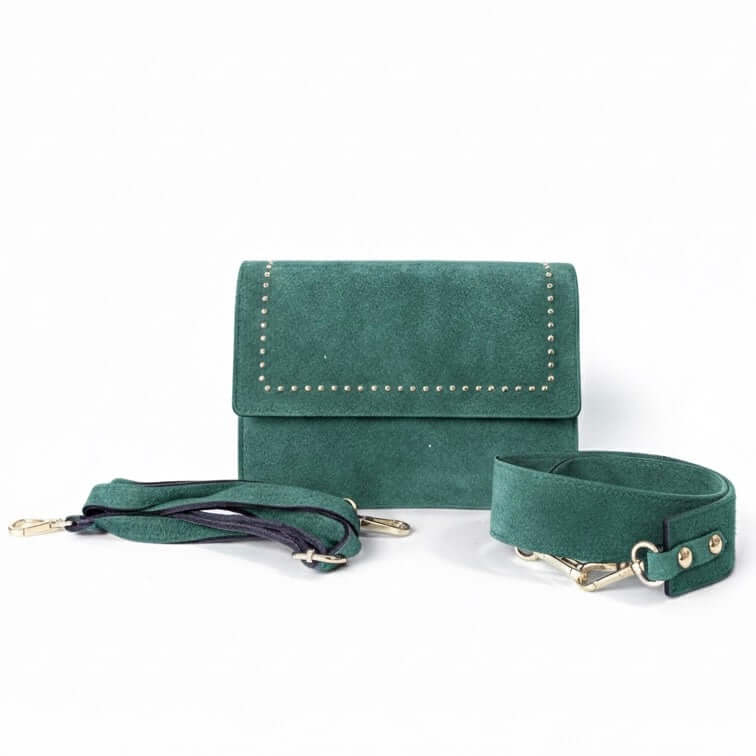 Poseta medie pentru femei din piele naturala, verde- Made in Italy