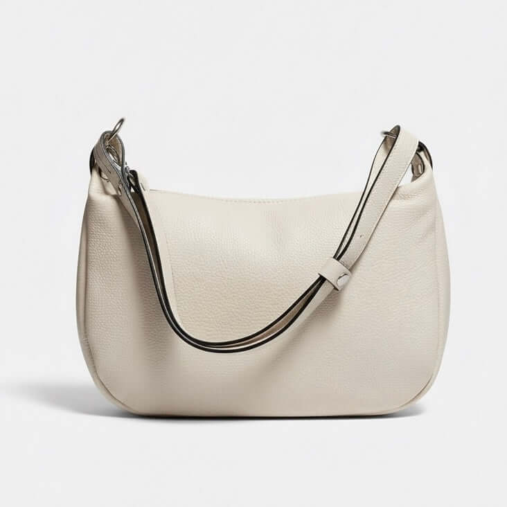 Poseta de umar mare pentru femei din piele naturala, alb unt- Made in Italy