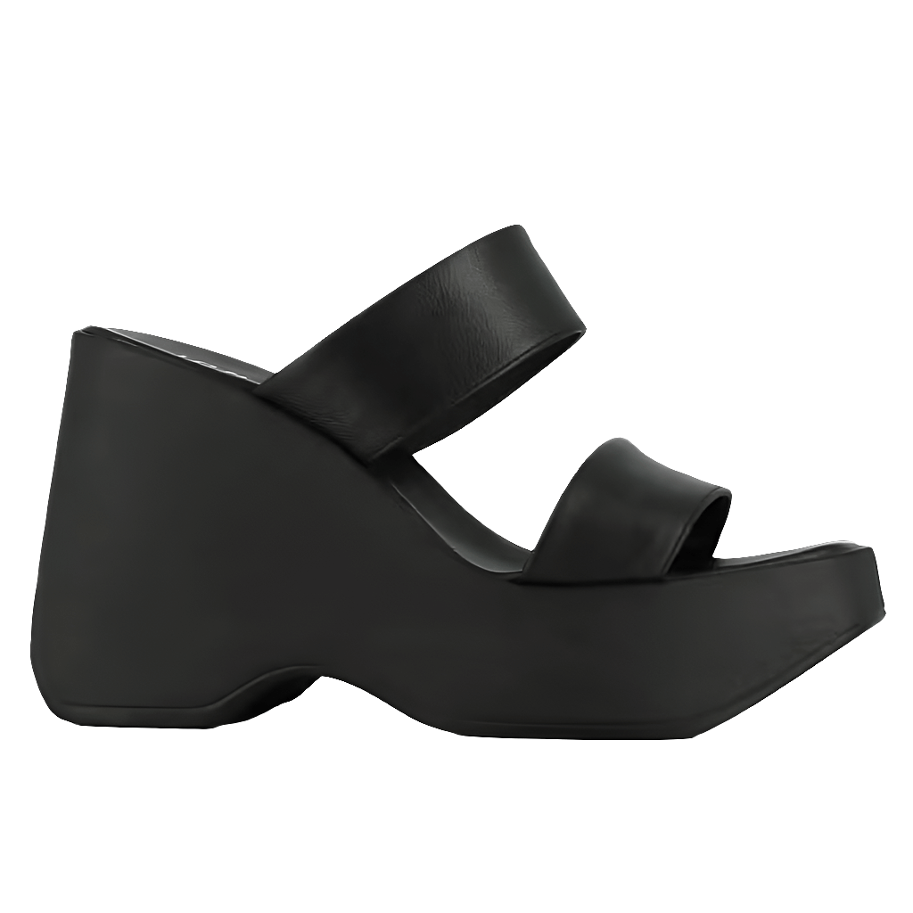 Sandale dama din piele naturala, Negru-DESA, IT-PLX016 Kadin Terlik Siyah DERI