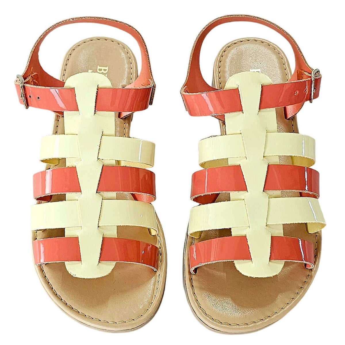 Sandale dama din piele naturala lacuita, Corai/Galben-Bellini, Art Norvegia Vern. Salmone/Giallo, R5